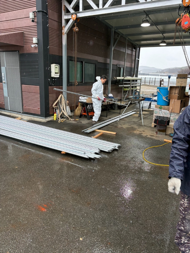 소방 배관 준비작업 산내기 작업 중