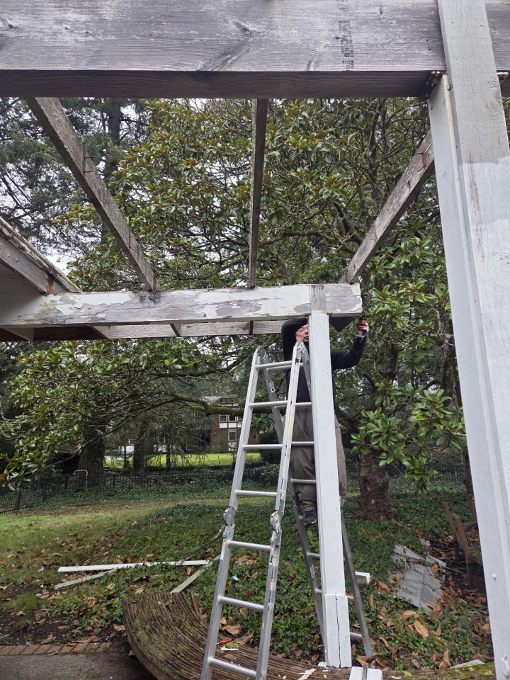 맨테크 작업자가 미국에 지인 집 수리중